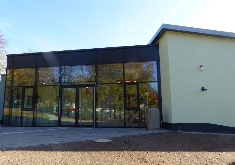 Seit Oktober 2021 steht die „Else Schütz-Zooschule“ am Rande des Spielplatzes. Ein großes, helles Foyer samt Terrarium empfängt die Besucher, die dort auch ganztägig zugängliche Toiletten vorfinden. In der Zooschule selbst gibt es drei Unterrichtsräume, die durch schalldichte Trennwände voneinander getrennt werden können, aber auch zu einem großen Raum verbunden werden können. Auch das Zooschulbüro und zwei Lagerräume befinden sich noch in diesem Gebäude. Finanziert wurde dieser Neubau komplett durch die Else Schütz Stiftung.